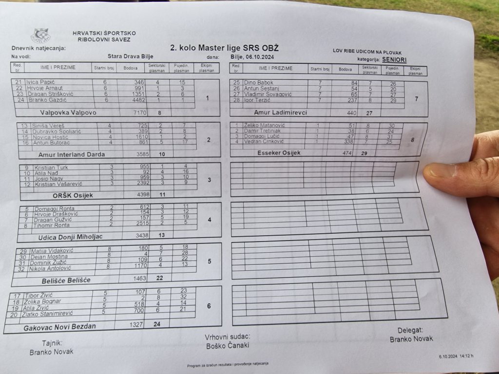 U nedjelju, 6. listopada održano je 5. kolo Master lige, ujedno i posljednje. Natjecanje se trebalo održati na Staroj Dravi Repnjak, ali zbog povišenog vodostaja rijeke Drave prebačeno je na Staru Dravu u Bilju. Iznimno težak ribolov gdje je jedna babuška donosila medalju. Ekipno osvajamo 5. mjesto, a na kraju sezone u ukupnom poretku 3. mjesto.